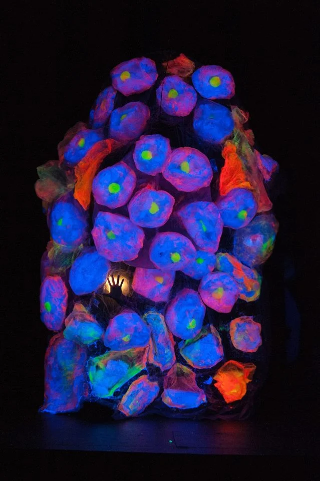 A joyous glow-in-the-dark performance of mitosis. Like a bedtime story as told by biologists, Cellula fuses a unique style of playful naturalism with scientific beauty. Through humor, dazzling sound and spectacle, Cellula illuminates the true marvels of cell science inside us all. Cellula features the live music of highly acclaimed improvisational vocalists Mankwe Ndosi (Atmosphere) and Libby Turner (Sounds of Blackness) with the blacklight puppetry of award-winning performers Shari Aronson and Chris Griffith.